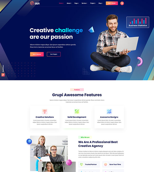 Grupi allows you to create beautiful website with some awesome features. We have built this theme as user friendly and we have made by Elementor Page Builder.